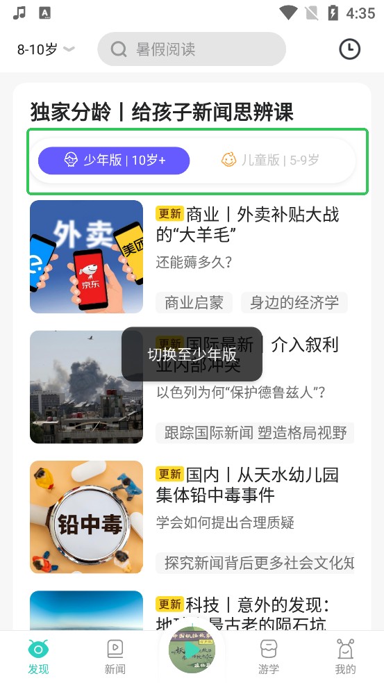 3软件中设有专属的分龄儿童新闻思辨课程,能依据孩子的年龄阶段灵活调整内容。