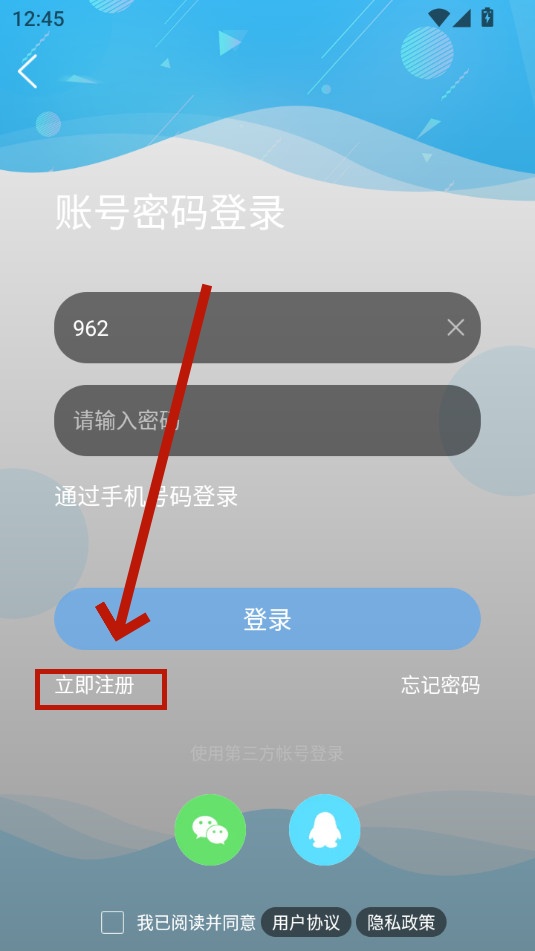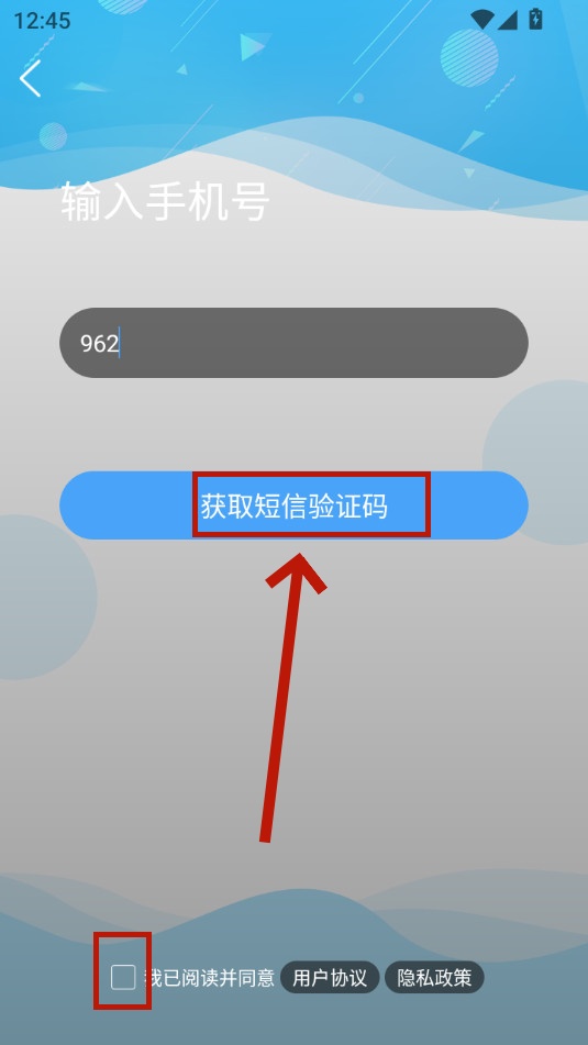 勾选用户协议,输入手机号码,