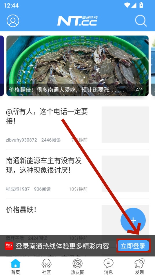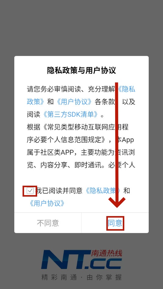 安装并打开南通热线,勾选用户协议,