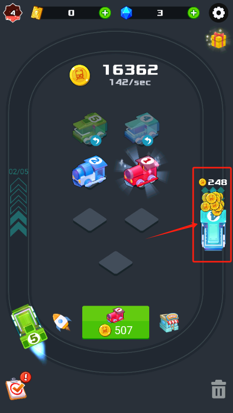 3、红框标着248金币,点一下收集赛道上的钱。