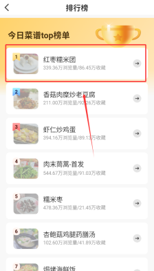 1打开应用后,通过主页的热门榜单功能就能找到心仪的菜品搭配方案,点击对应的条目就能查看详细内容。