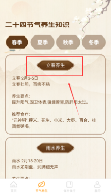 3进入后,能浏览到适配四季的菜谱,还能获取养生相关内容以及对应菜品的详细介绍。