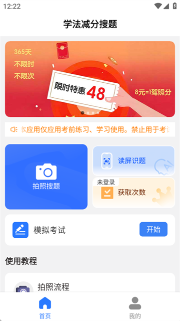 “学法减分搜题2025”是一款专为驾考人群设计的拍照搜题应用,用户借助拍照或文字输入的搜题方式,就能快速匹配平台题库,获取对应试题的答案解析,从而更高效地学习掌握与考试相关的交通法规知识。