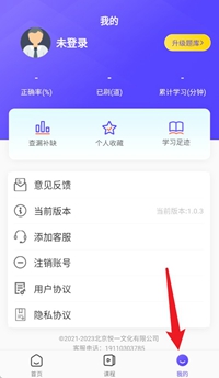 4在“我的”页面里,用户能够查看学习统计数据,还能找到收藏题目、意见反馈等个性化功能选项。