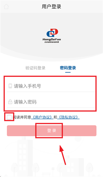 填写手机号码与个人密码,确认已阅读并同意相关用户条款及隐私政策后,点击登录按钮就能完成操作