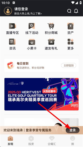 2、在瑞承主界面,点击底部的登录,进入登录页面。