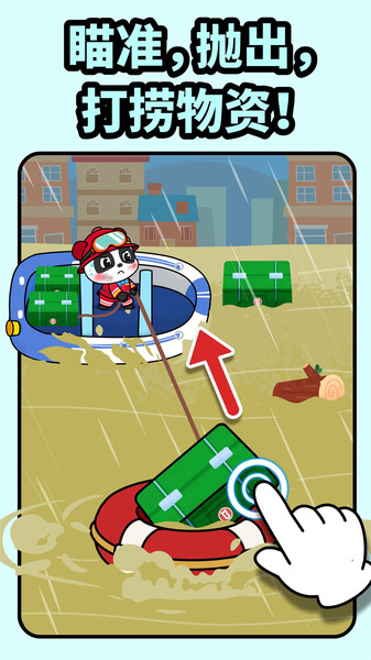 物资抢救:把握合适的时机,把洪水里的救援物资打捞起来,别让它们漂走啦!(能锻炼宝宝的手眼协调能力)