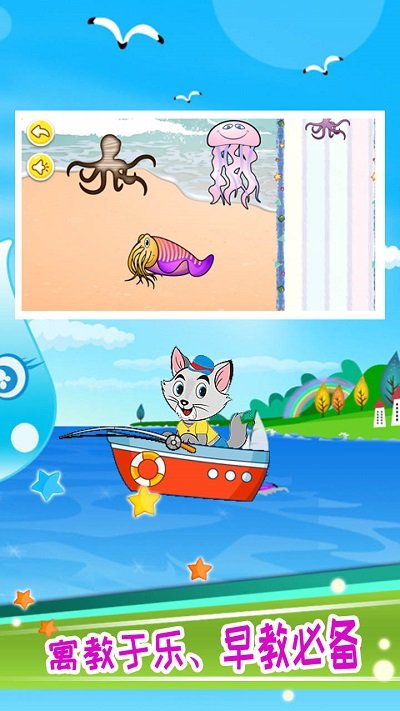 为低龄幼儿打造的趣味数学入门互动项目,融入海洋生物的音效元素,帮助孩子辨识不同海洋生物,领略自然的奇妙之处,呈现出绚丽多彩的海底环境与形态万千的海洋物种,比如身形巨大的鲨鱼、小巧玲珑的热带鱼、能释放毒雾的水母等……孩子们快来把这些海洋生物都钓回船上吧。