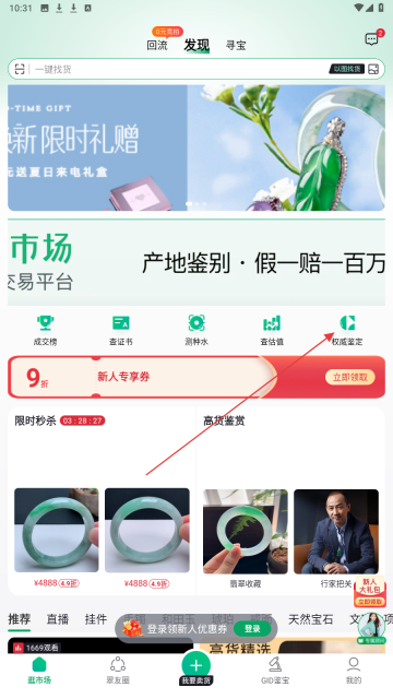 1、点击【权威鉴定】按钮,即可进入珠宝鉴定相关服务页面。