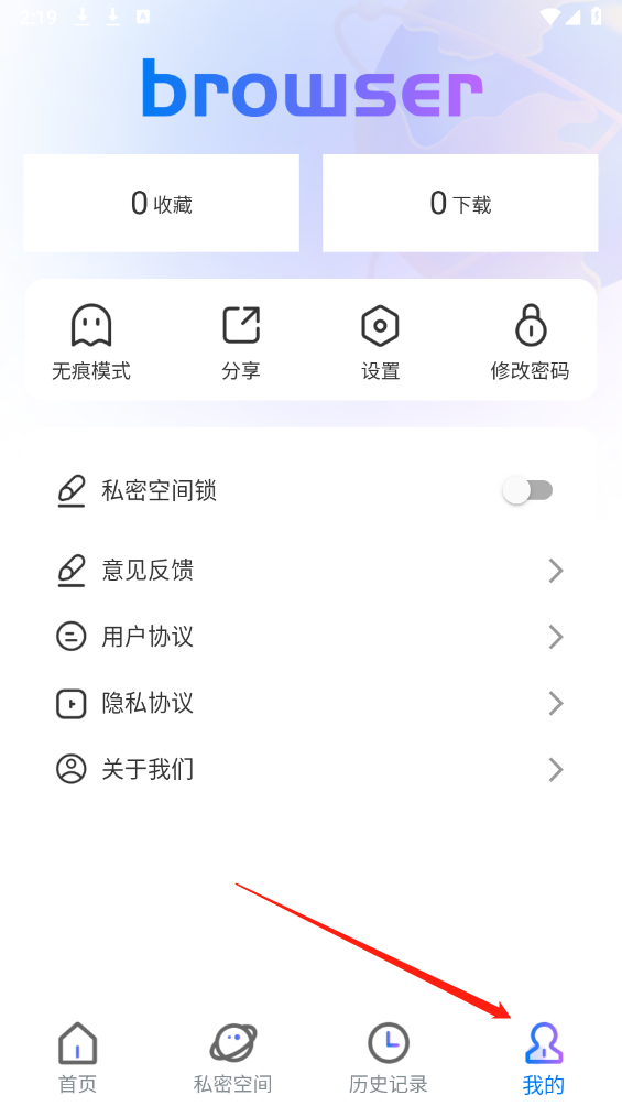 1、第一步请在本站完成小S浏览器的安装,打开软件后找到并点击“我的”选项。