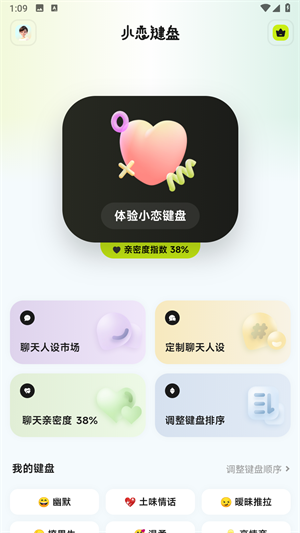 1、打开小恋键盘后进入首页,就能直接体验小恋键盘的功能了。