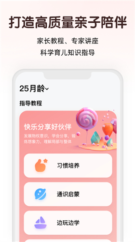 5、此外平台还会提供育儿方面的建议与指导,尤其适合刚开始进行早教的新手家庭,有助于缓解他们的教育焦虑,提高孩子的启蒙效率。