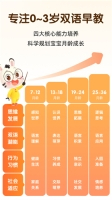3、打造沉浸式双语环境,让宝宝在自然交流中慢慢培养语感,轻松开启中英双语启蒙之旅。
