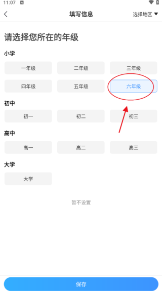 进入软件后,找到填写信息的页面并进入,接着选择六年级的栏目就可以了。