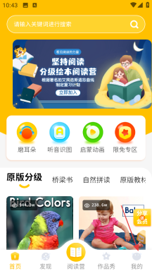 1、资源类型丰富多样:包含海量英语经典绘本、听读学习素材以及启蒙动画,覆盖了从低到高的不同难度层级与丰富主题,能够满足幼儿至小学阶段孩子的英语启蒙学习需求,无需切换平台或资源库,就能便捷获取多元化的学习内容。