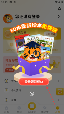 3、在弹窗中,点击登录领取权益,进入登录页面。