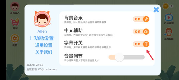 3接下来可以配置若干预设参数,首先确认字幕功能的开启情况,其中“off”表示该功能处于未启用的状态。