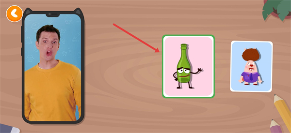 4按照系统给出的提示,点击对应的卡片(例如绿色瓶子样式的卡片),就可以继续进行学习,在互动过程中学会英语单词。
