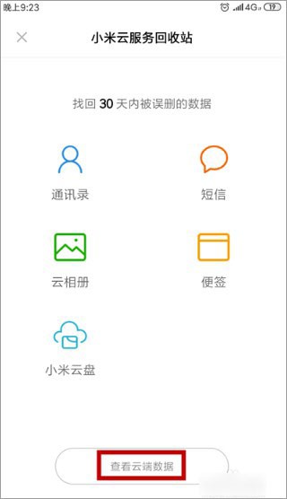 1、并打开小米云服务最新版,点击【回收站】选项;