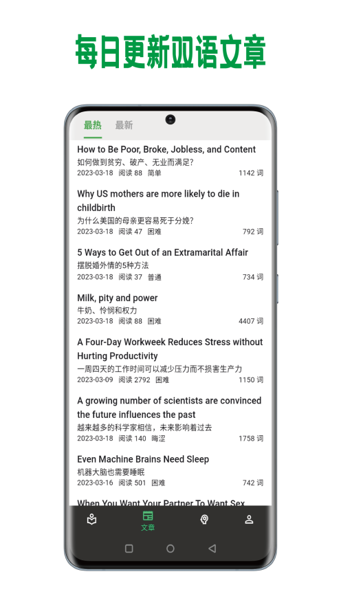 巴别阅读是一款为英语学习爱好者量身打造的阅读辅助工具,它不只是专注英语学习的阅读平台,更是汇聚海量英文资料的在线阅读宝库。这里内容丰富多样、资源齐全广泛,从经典英文原著到最新英文资讯,各类内容一应俱全。平台特别设置了中英对照功能,读者在阅读英文原文时,可轻松对照中文翻译,实现边阅读边学习,从而有效提升英语阅读理解能力,让英语学习更高效、更有趣。
