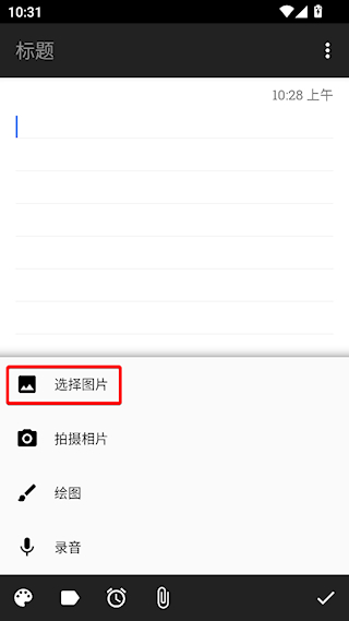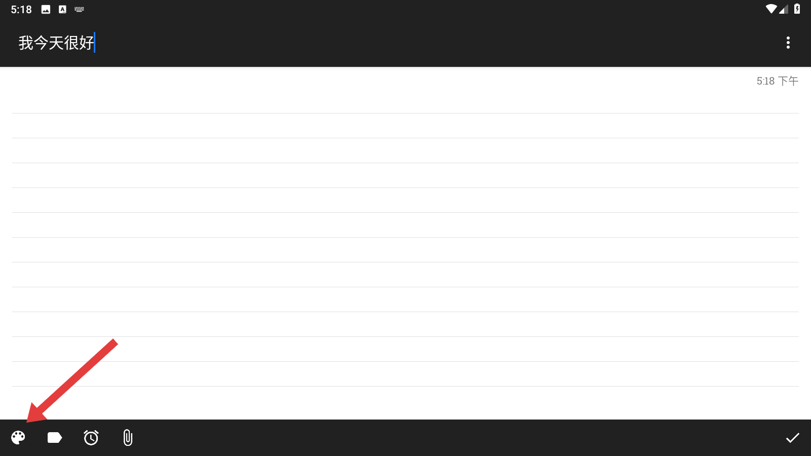 2进入笔记编辑界面后,找到页面下方的调色板形状图标并点击,此时会弹出颜色选择面板,方便为笔记选取心仪的色彩。