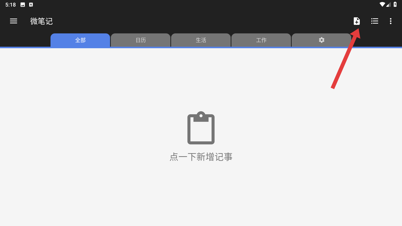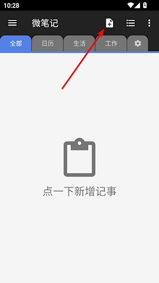 1、我们打开微笔记应用,点击右上角的新增记事按钮,进入笔记编辑页面,就可以开始记录生活中的点滴了。