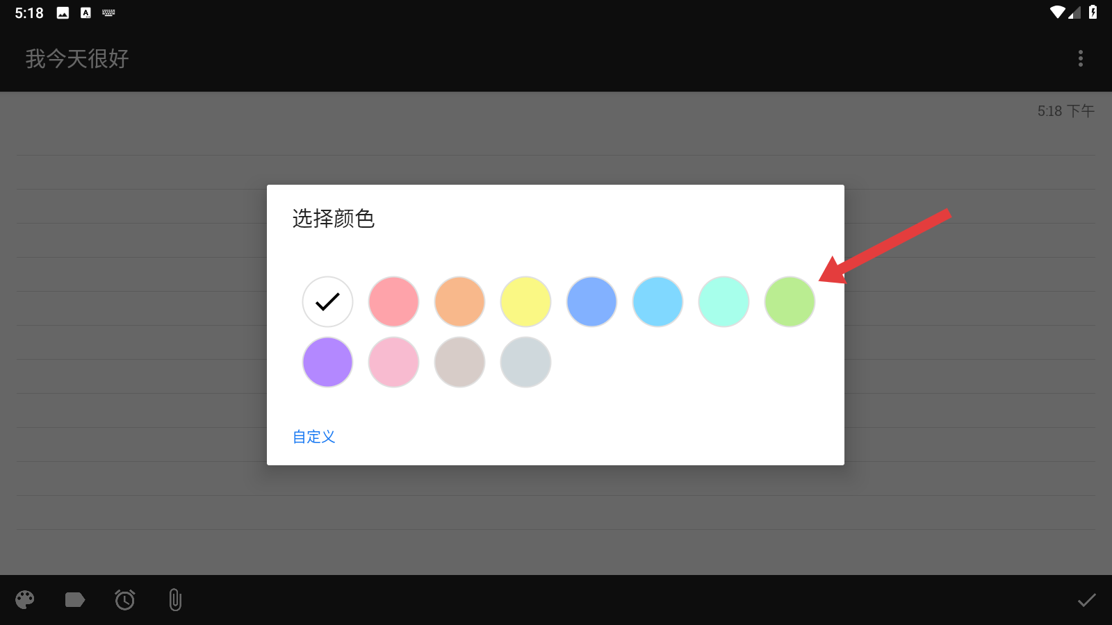 3、打开颜色选择面板后,选择绿色选项,这样笔记界面会显得清新又舒服,记录起来也更愉快。