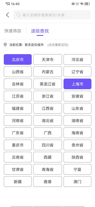 3进入相应界面后,用户既可以开启定位权限,系统会自动识别所在城市;也能手动输入具体地区来完成添加操作。