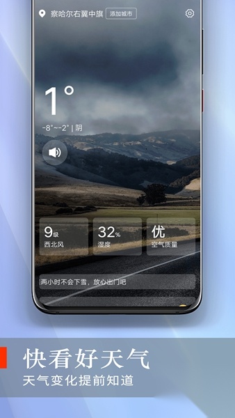 1系统能即时呈现天气状况,包含气温、空气湿度、风的走向与速度等具体的气象信息。