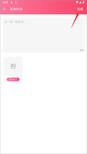 3在上方区域填写文字内容后插入图片,点击“完成”按钮就能完成发布操作。