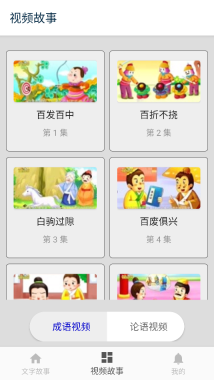 3、点击“视频故事”选项后,可挑选一个成语进入观看界面,软件将通过动画片的形式进行播放。
