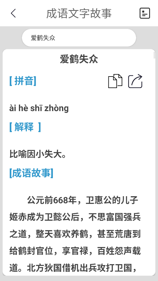 2进入成语文字故事页面后,软件会以文字形式介绍每一个成语故事。