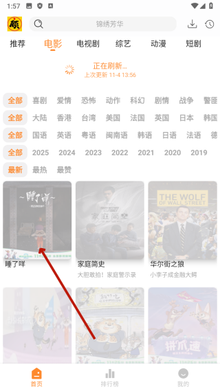 2、在电影分类页面,点击【目标电影】,进入电影播放页面。