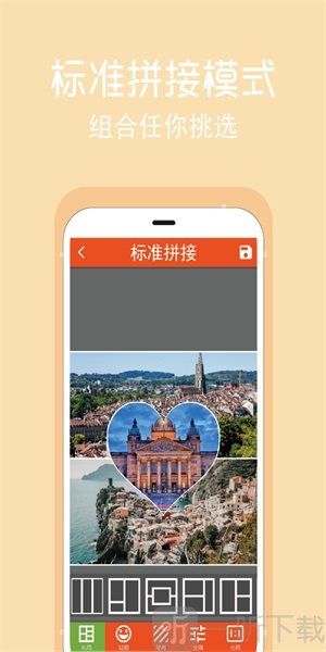 2多种图片拼接操作更简便,平台提供大量拼图模板供直接选用,还能免费添加各类滤镜与贴纸。