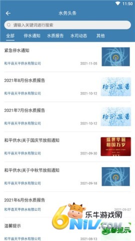 3、点击水务头条,即可查看本地自来水公司的公告。