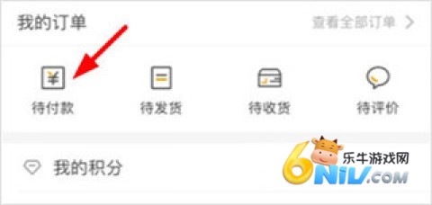 2、在个人中心页面,找到并点击“待付款”按钮。