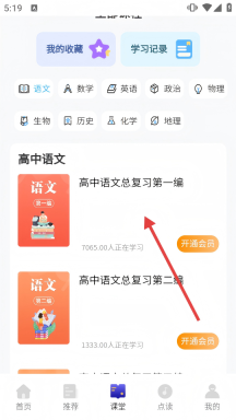 2、在课堂页面里,找到并点击【高中语文总复习第一编】这一课程条目。