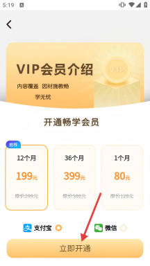 4、选定会员时长后,点击页面底部的【立即开通】按钮,完成支付即可解锁课程内容。