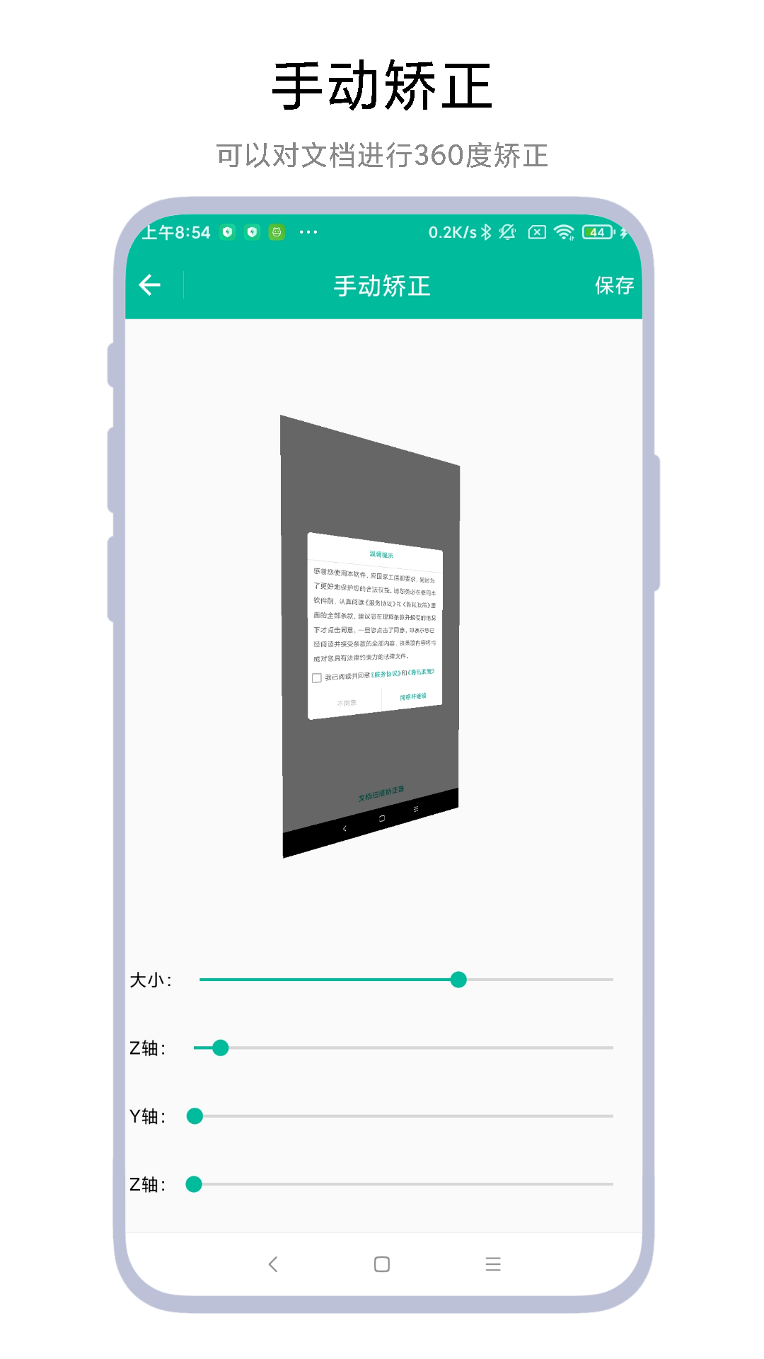 3.扫描时,应用能够自动识别文档的边界,完成精准的边框检测,防止扫描出现失真情况