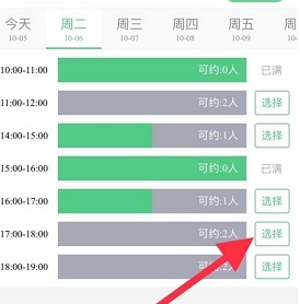 4、根据想要预约的时间段,点击右侧的“选择”