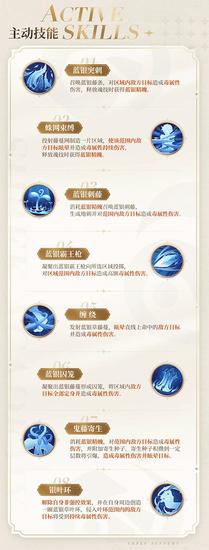 汇聚出一杆蓝银霸王枪,朝着选定区域掷出,对该区域内的敌方目标造成大量毒属性伤害。