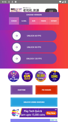 1. 开启软件,选取全局模式global,接着点击解锁90帧模式。