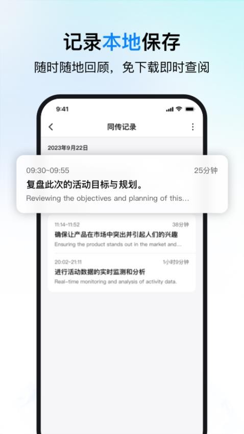 1在会议沟通或观看外语内容时,同步翻译功能能实时输出对应的译文,让你在接收信息的同时就能看到翻译结果。