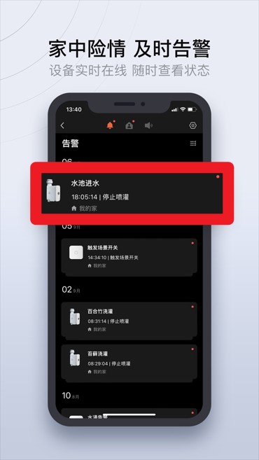 【设备告警】实时推送设备状态告警信息,助您安心离家无牵挂。
