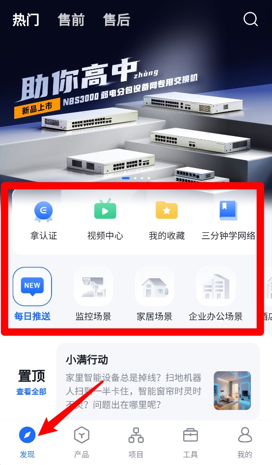 1可以点击页面底部的“发现”按钮,进入推荐区域后,你可以进行领取认证、浏览视频、收藏感兴趣的内容以及快速学习各类网络知识等操作。
