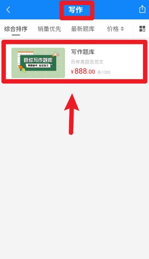 4在写作分类页面,你可以先浏览题库的具体信息,了解里面的内容以及有多少用户在使用,之后再决定是否购买权限来开始学习。