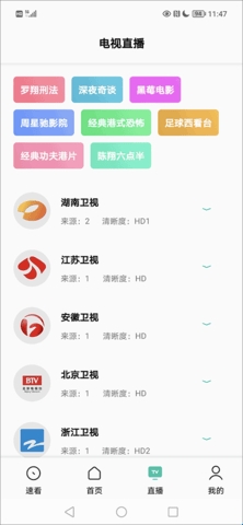 3切换至直播板块,可实时观看多家电视媒体的频道节目。