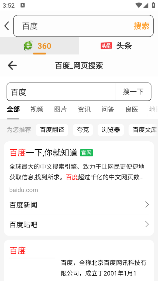3、这里搜索的是百度,可以在百度上面进行搜索。