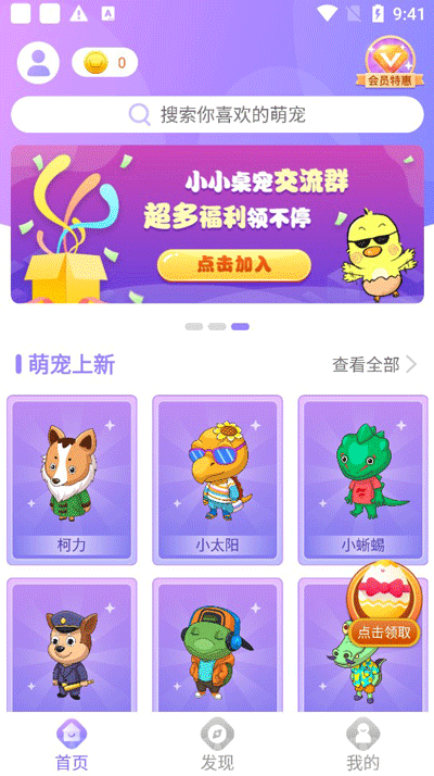 2进入主页后,你可以挑选一只合心意的宠物,要是想看看更多选择,也能通过点击相关按钮浏览所有宠物。