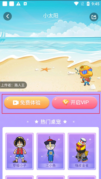 3、进入宠物页面后,点击“免费体验”即可获取宠物;若想快速拥有心仪的宠物,也可以选择开通VIP哦